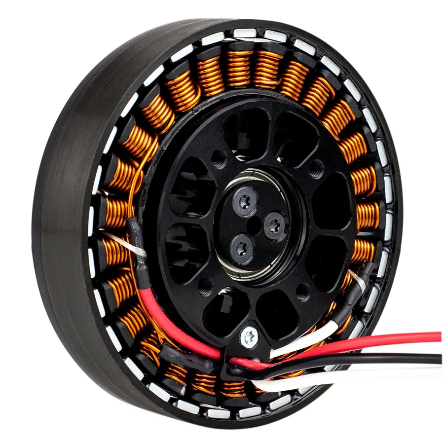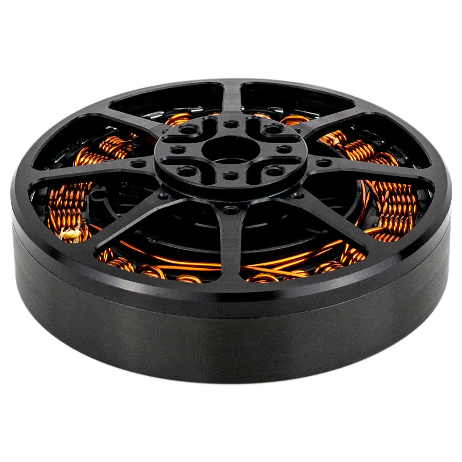 Offering high torque, low weight, and exceptional efficiency in a rugged bearing design for reliable thrust in demanding environments. Optional advanced windings and optimized cooling design for thrust applications. Available with or without integrated drive and control.