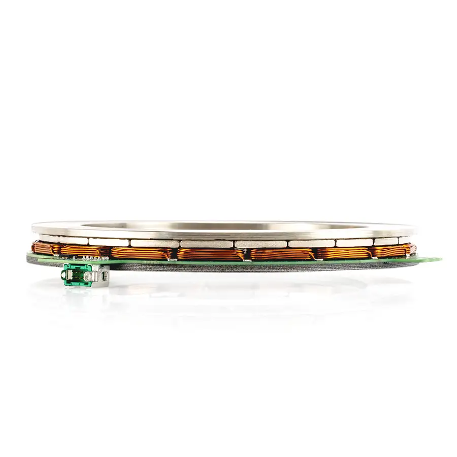 Our SA series of Axial Flux Motors are excellent for low profile applications: moving cameras, gimbals and scanning or imaging systems. These motors are slotless and therefore have zero cogging torque.